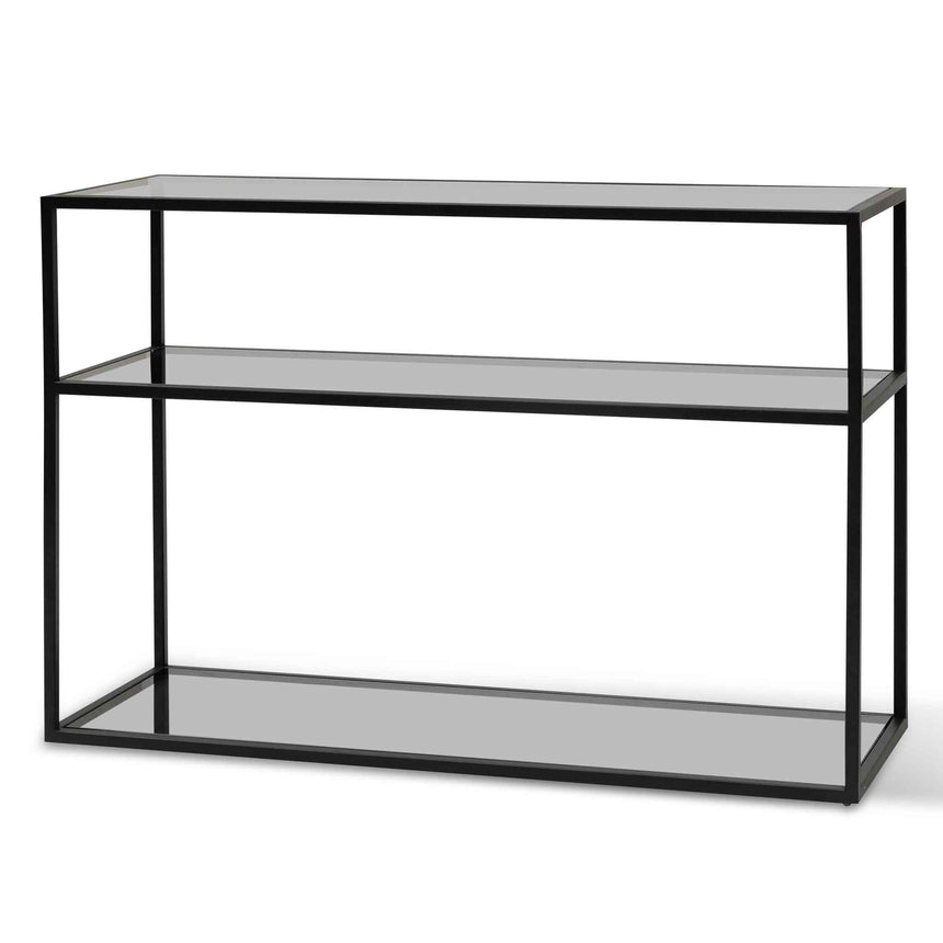 Enhance your decor with the sleek sophistication of a black console table. This versatile piece adds a touch of elegance to your space.