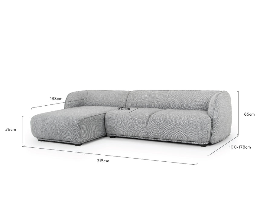 Chaise: 110cm (W) x 134cm (D) x 46cm (H)